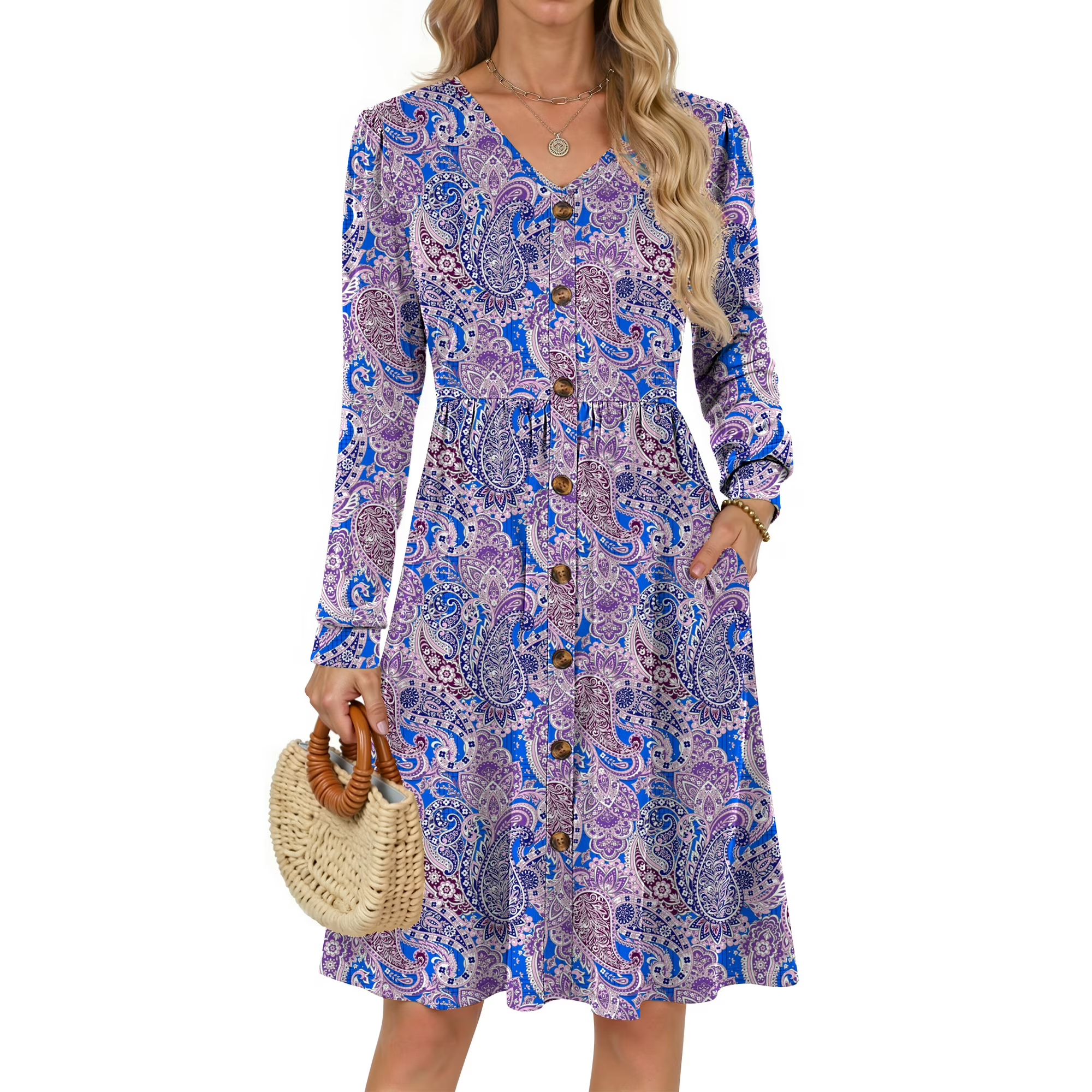 Fantaslook Long Sleeve Floral Midi Dress with Pockets π