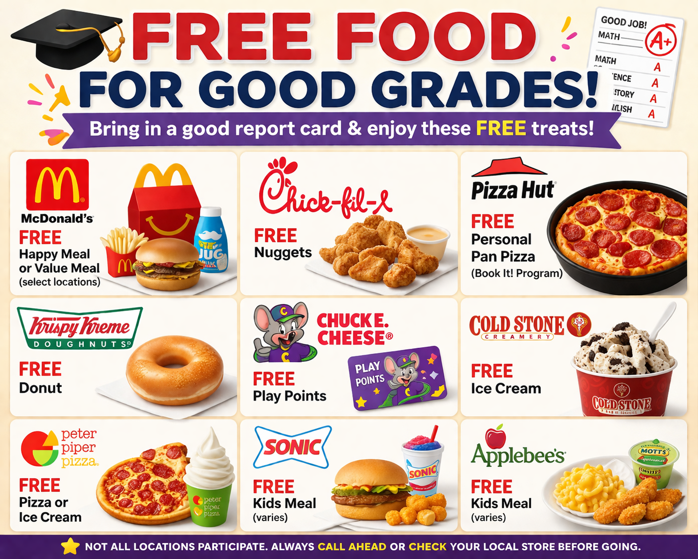 Yep โ several popular restaurants reward kids with free meals, pizza, ice cream, and more just for doing well in school. Itโs one of the easiest (and most fun) ways to celebrate their hard work!